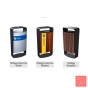 Paperera de forma rectangular amb recobriment de llistons de fusta.