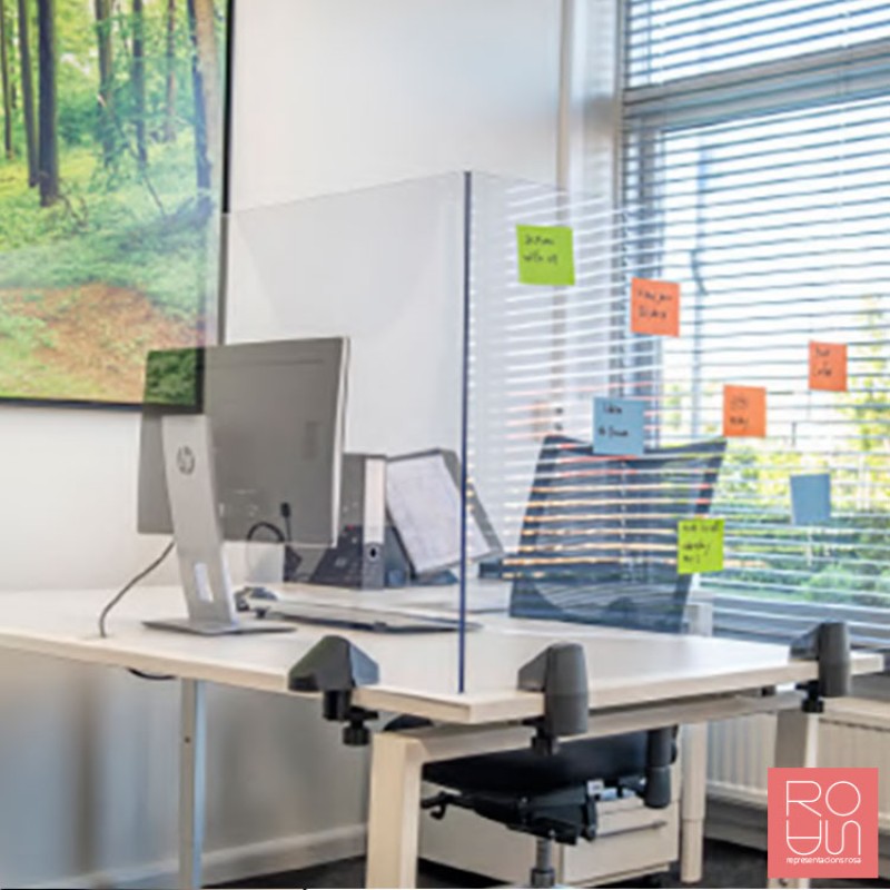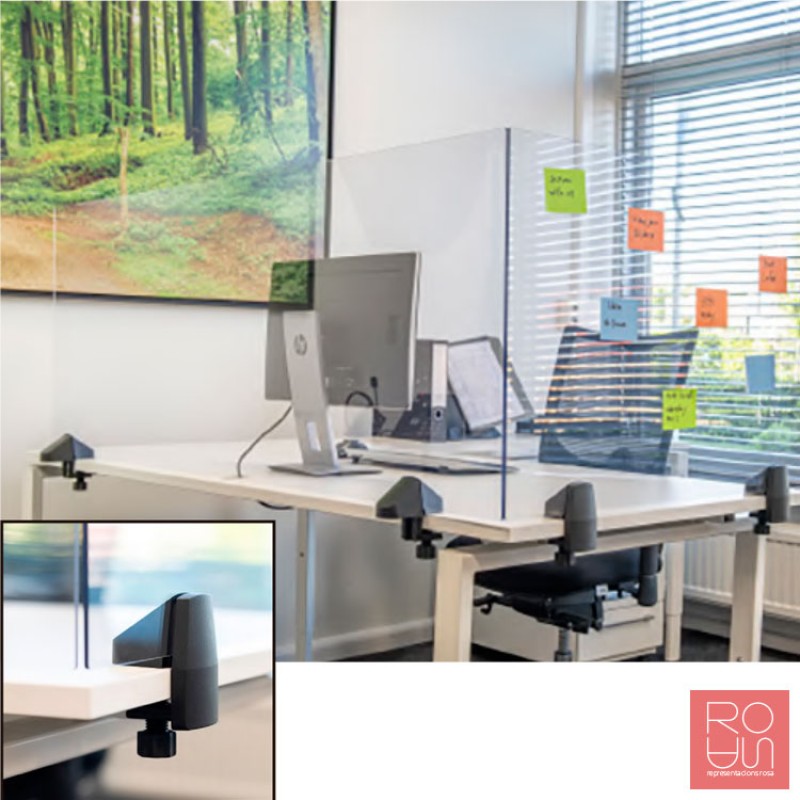 Mampara amb pinces per distanciament social a l'oficina