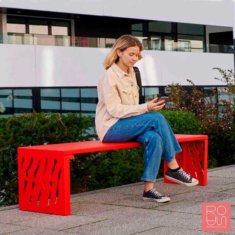 Banqueta Silaos per marquesines d'autobús en acer i plàstic reciclatLa banqueta Silaos en ..