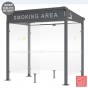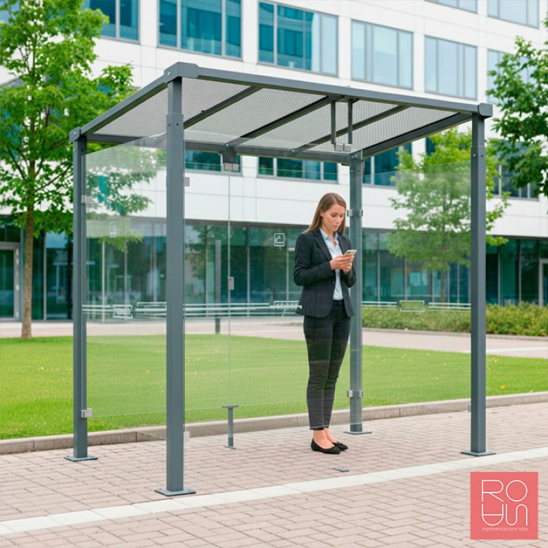 Disseny, espai i confort per a la teva empresa. La marquesina Milà combina un disseny modern i elegant amb una funcionalitat excepcional, oferint un espai confortable i segur per a l'ús dels fumadors. És una solució àmplia i contemporània que s'adapta perfectament a qualsevol entorn empresarial.