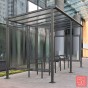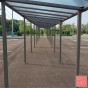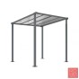 Un model clàssic amb estil modern. Mesures: amplada de 2500 x alçada de 2880 x profunditat 2434 mm. Estructura en postes d'acer de 80x80 mm. Sostre amb travesser de tub d'acer de 60x60 mm i panells de policarbonat alveolar de 10 mm de gruix amb tractament anti-UV. Acabat en pintat sobre galvanitzat en un sol color o bé en dos color segons la nostra carta de colors RAL. Extensió en mòdul complementari de llargada 2500 mm. Fixació sobre platines amb peus regulables en alçada i es subministra amb tacs d'expansió.