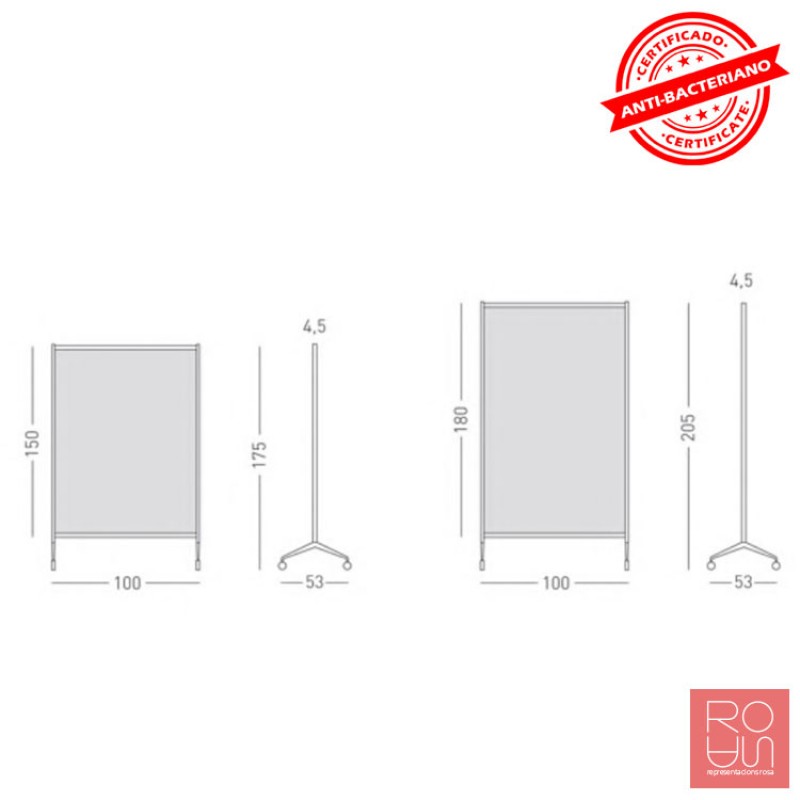 Mampara Ten Limit fabricada amb melamina certificada antibacteriana.