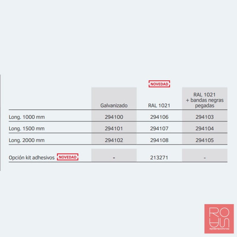 . Tres llargades de 1000, 1500 o 2000 mm.