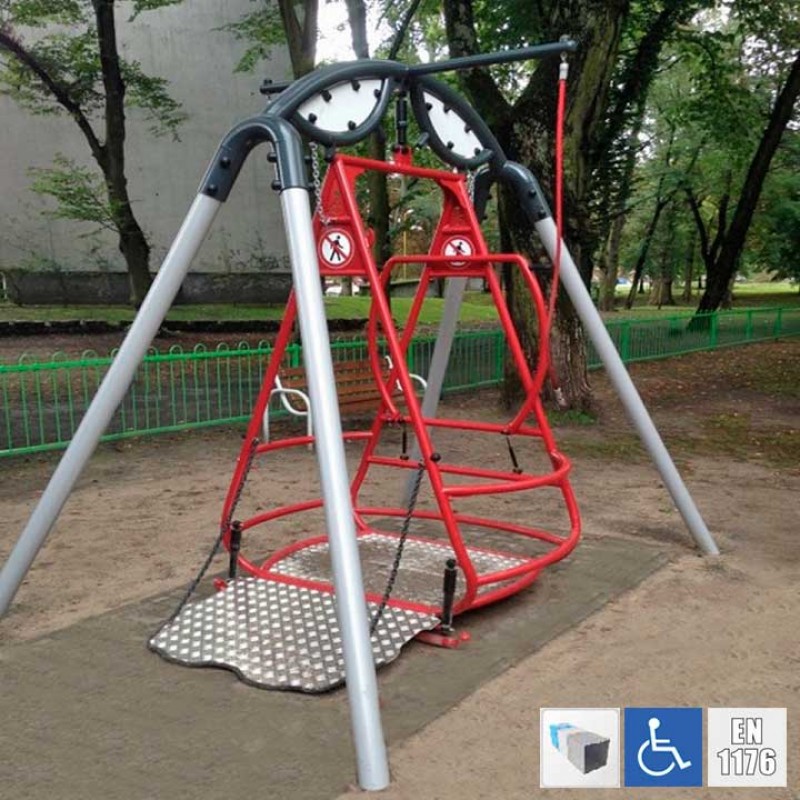 Aquest gronxador per als discapacitats només és adequat per a usuaris amb cadira de rodes, donada l'alçada de caiguda limitada no requereix terra de seguretat especial.