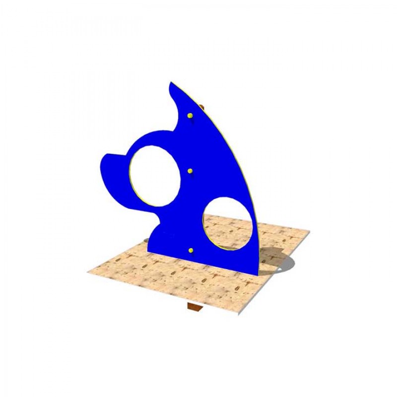 • Estructura amb pals de fusta de 90 mm tractats i acabats amb lasur. Panells de polietilè d'alta densitat de 16 mm i cargols M8 x 30, 90,110 i 120. Cubretornillos de color groc. Barra de diàmetre 28 d'acer pintada al forn.