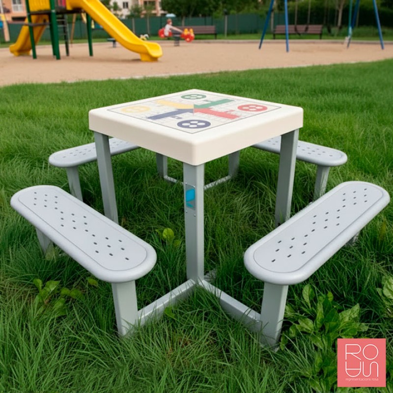 Descobreix la Taula Multijocs d'Exterior de 4 seients, la solució perfecta per a parcs, escoles i zones de lleure. Dissenyada i fabricada per resistir les condicions climàtiques més exigents, aquesta taula combina un disseny robust amb la màxima diversió per a totes les edats.