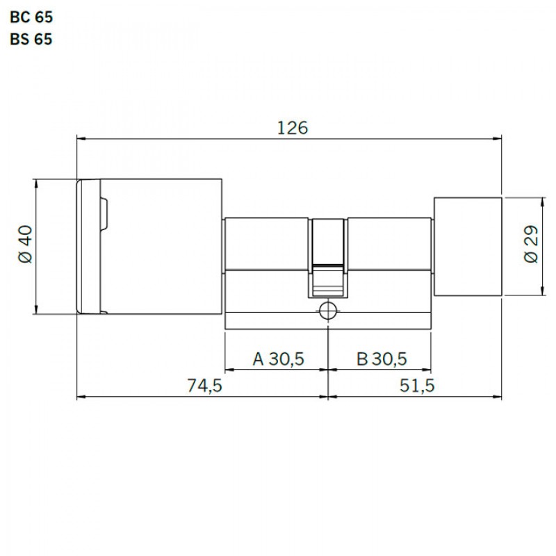 Cilindre amb pom (electrònica a un sol costat) BS65
