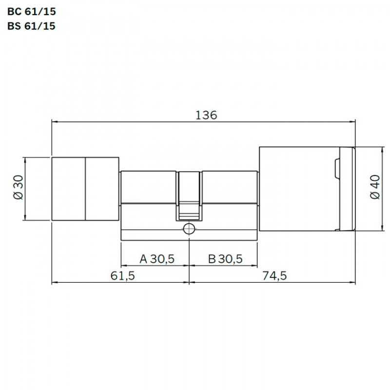 Cilindre amb pom doble (electrònica als dos costats) BS61/15